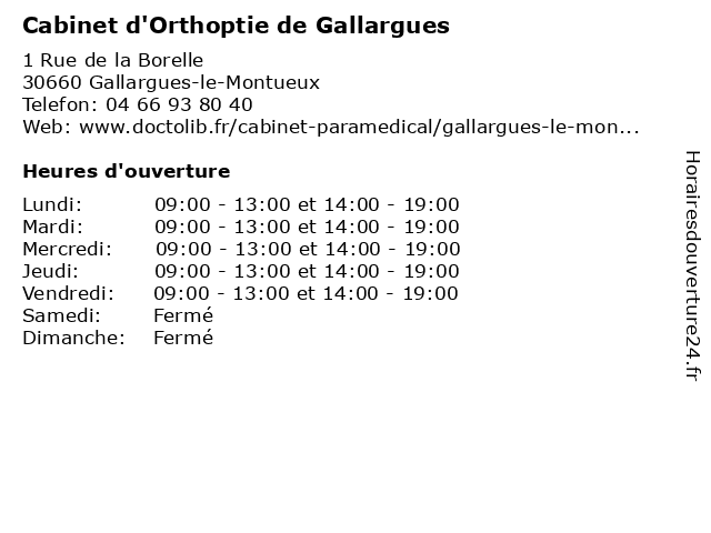 | Lundi | 09:00-13:00 et 14:00-19:00 |