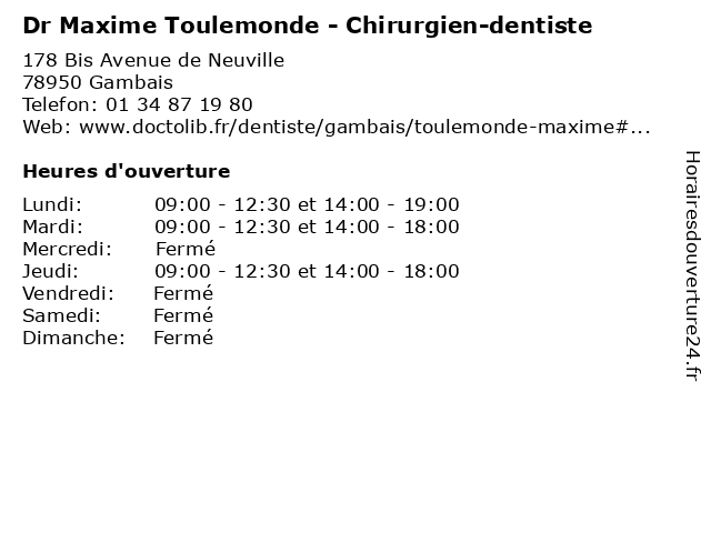 | Lundi | 09:00-12:30 et 14:00-19:00 |