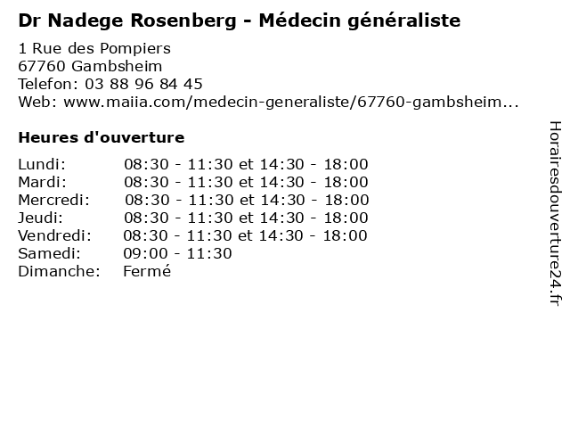 1 Dr Sophie Rosenberg - Médecin généraliste (Distance: 13,85 km) 52a Route de Bischwiller, 67800 Bischheim autre, consultation, docteur, dr, générale, généraliste, médecin, médecine, médecins, rosenberg, santé, sophie 2 Dr Nadège Bergerat - Médecin généraliste (Distance: 19,42 km) 15 Avenue de Normandie, 67100 Strasbourg bergerat, docteur, dr, generaliste, généraliste, medical, médecin, nadege, nadège, soin 3 Nadege Jung - Infirmier (Distance: 34,00 km) 12 Rue Kellermann, 67120 Molsheim infirmier, infirmiere, jung, nadege, sante, soins 4 Dr. Nadege Marechal (Horaire du Secrétariat) - Addictologie (Distance: 39,65 km) 19 Côte de Saverne, 67703 Saverne addictologie, docteur, dr., du, horaire, marechal, medecins, nadege, sante, secrétariat 5 VOLTZENLOGEL NADEGE - KIEFER VERONIQUE - BAUDOUX STEPHANIE (Distance: 45,50 km) 50 Rue Principale, 67290 LA PETITE-PIERRE baudoux, kiefer, nadege, stephanie, veronique, voltzenlogel 6 Dr Morgane Moyon - Médecin généraliste (Distance: nan km) 1 Rue des Pompiers, 67760 Gambsheim docteur, dr, generaliste, généraliste, medecin, morgane, moyon, médecin, soins |
