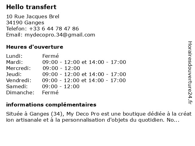 | Mardi | 09:00-12:00 et 14:00-17:00 |