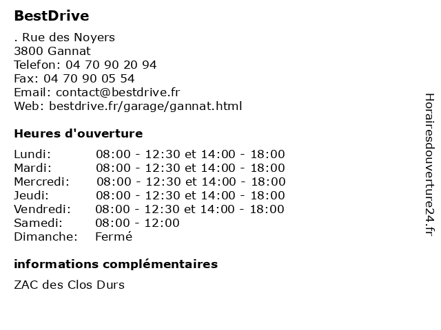 Lundi | 08:00-12:30 et 14:00-18:00 |