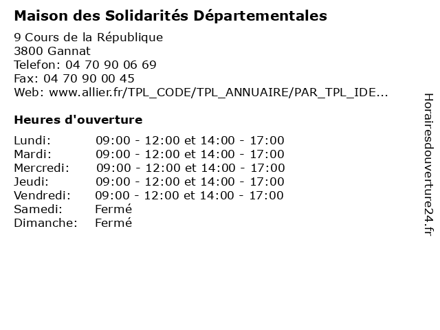| Mardi | 09:00-12:00 et 14:00-17:00 |