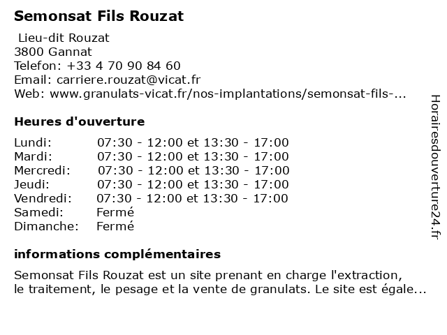 | Vendredi | 07:30-12:00 et 13:30-17:00 |