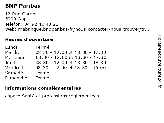 3 BNP Paribas (Distance: 41,81 km) 151 Rue de Provence, 04200 Sisteron banque, bnp, expertises, financement, paribas 4 BNP Paribas (Distance: 46,11 km) 28 Rue de la république, 05120 L'argentiere la bessee bnp, bnp paribas, l'argentiere la bessee, paribas 5 BNP Paribas (Distance: 46,35 km) 1 Rue maurice petsche, 05600 Guillestre bnp, bnp paribas, guillestre, paribas 6 BNP Paribas (Distance: 49,27 km) 9 Rue manuel, 04400 Barcelonnette barcelonnette, bnp, bnp paribas, paribas |