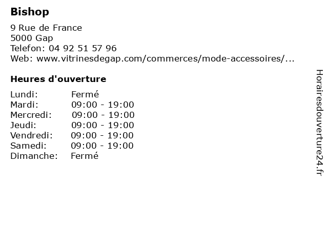 2 Instinct Féminin (Distance: 0,02 km) 9bis Rue Pasteur, 05000 Gap accessoires, féminin, habillement, instinct, magasin, mode, vetements 3 RIU Paris (Distance: 0,03 km) 10 Rue de France, 05000 Gap accessoires, boutique, habillements, mode, paris, riu, vêtements 4 Opticien Gap | Alain Afflelou (Distance: 0,04 km) 11 Rue Carnot, 05000 Gap afflelou, alain, gap, magasin de lunettes de soleil, magasin d’accessoires de mode, opticien, optométrie 5 Audition Conseil (Distance: 0,04 km) 2 Rue Pasteur, 05000 Gap accessoires, assistance, audio, auditif, audition, conseil, magasin, medicale 6 Denim Store (Distance: 0,04 km) 15 Rue Carnot, 05000 Gap accessoires, boutique, denim, femme, gap, mode, store, vêtements |