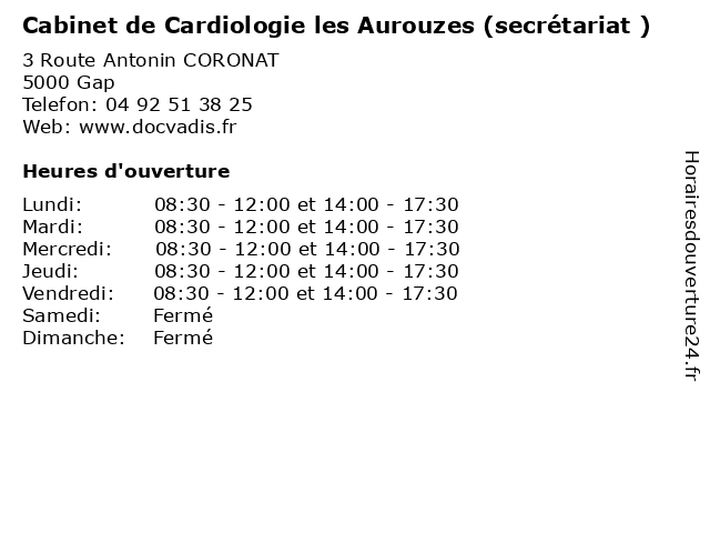 Termes de recherche pour Cabinet de Cardiologie les Aurouzes (secrétariat ):les, de, cabinet, santé, secretariat, docteur, consultation, cardiologie, aurouzes |
