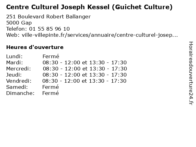 Termes de recherche pour Centre Culturel Joseph Kessel (Guichet Culture):centre, culture, culturel, joseph, activités, guichet, evenements, kessel  |