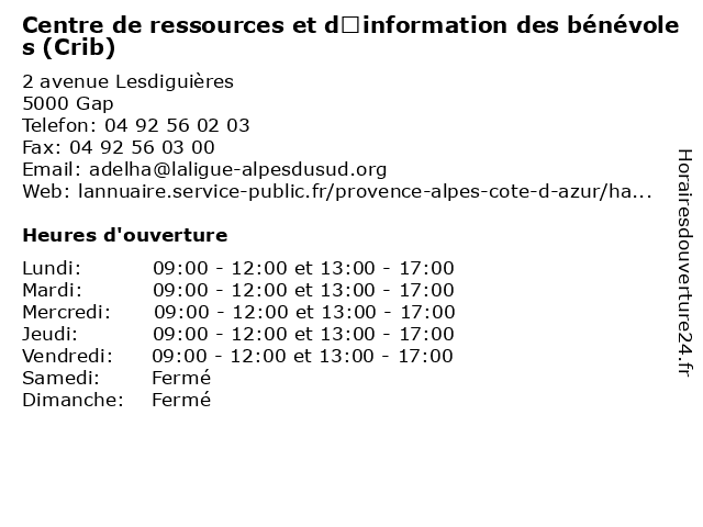 | Mardi | 09:00-12:00 et 13:00-17:00 |
