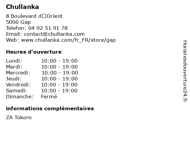 | Samedi | 10:00-19:00 |