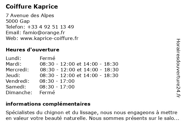 | Mardi | 08:30-12:00 et 14:00-18:30 |
