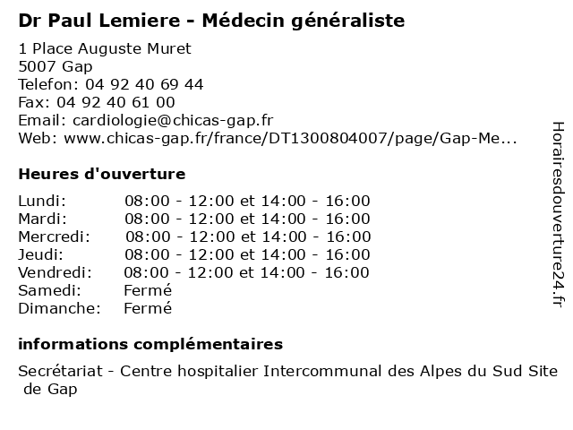 | Mercredi | 08:00-12:00 et 14:00-16:00 |