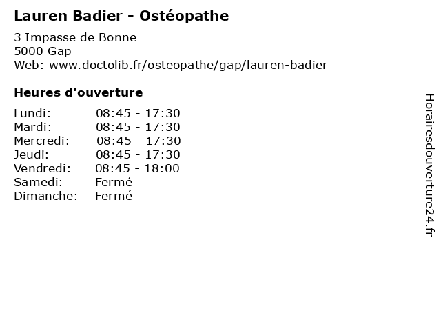 | Lundi | 08:45-17:30 |