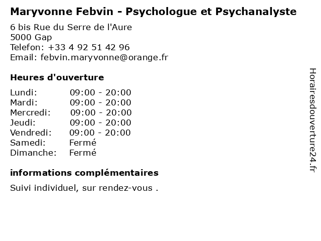 Termes de recherche pour Maryvonne Febvin - Psychologue et Psychanalyste:et, febvin, maryvonne, psychologue, psychanalyste |