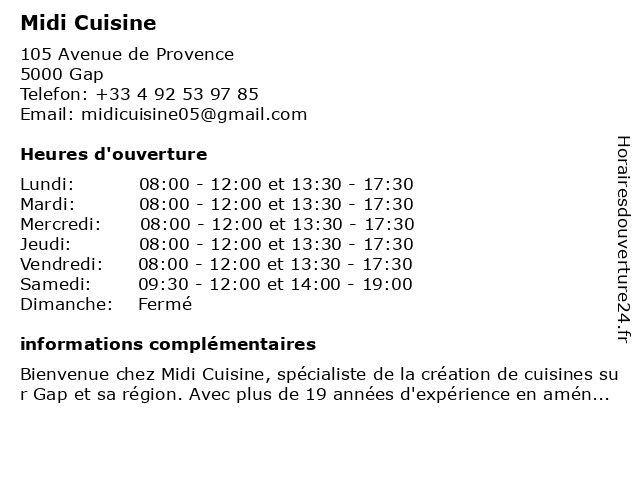 | Samedi | 09:30-12:00 et 14:00-19:00 |