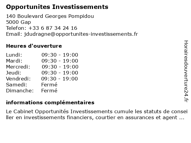 Horaires d'ouverture |