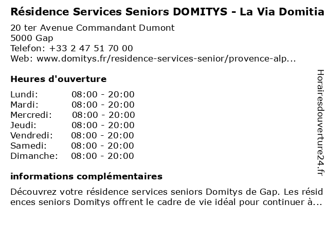 1 Domusvi Résidence Tiers Temps (Distance: 0,47 km) 27 Rue Charles Aurouze, 05000 Gap domusvi, résidence, temps, tiers 2 ALP Seniors Durance (Distance: 0,89 km) 10 Rue Carnot, 05000 Gap ad, aide aux seniors, alp, compagnie, durance, senior, seniors, services à la personne 3 Point d'information local dédié aux personnes âgées (Distance: 0,97 km) s/n Rue des Métiers, 05000 Gap administration, aux, d'information, dédié, gap, local, organismes, personnes, point, publics, services, âgées 4 Senior Compagnie (Permanence téléphonique) (Distance: 1,52 km) 3 Avenue Jean Jaures, 05000 Gap aide aux seniors, compagnie, permanence, senior, services à la personne, téléphonique 5 Point d'information local dédié aux personnes âgées (Distance: 32,36 km) . Rue Pierre et Marie Curie, 05200 Embrun administration, aux, d'information, dédié, embrun, local, organismes, personnes, point, publics, services, âgées 6 Plateforme d'Accompagnement et de Répit pour les Aidants de Personnes âgées (Distance: 53,61 km) 2 avenue du Maréchal Leclerc, 04000 Digne-les-Bains administration, aidants, bains, d'accompagnement, de, digne, et, les, organismes, personnes, plateforme, pour, publics, répit, services, âgées |