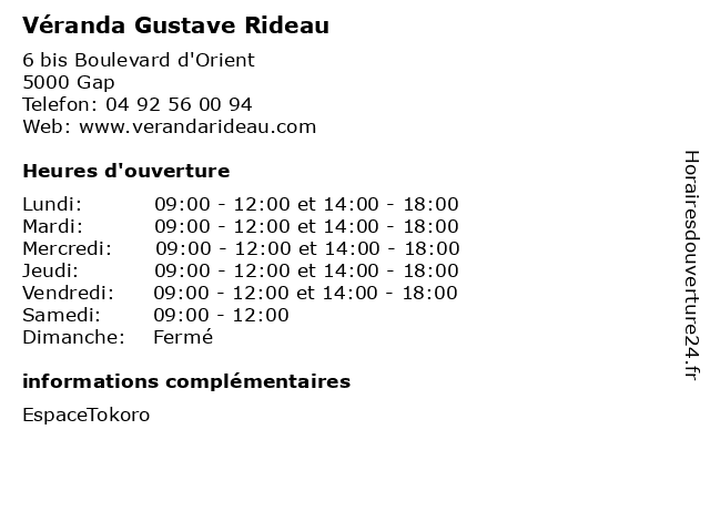 | Mardi | 09:00-12:00 et 14:00-18:00 |