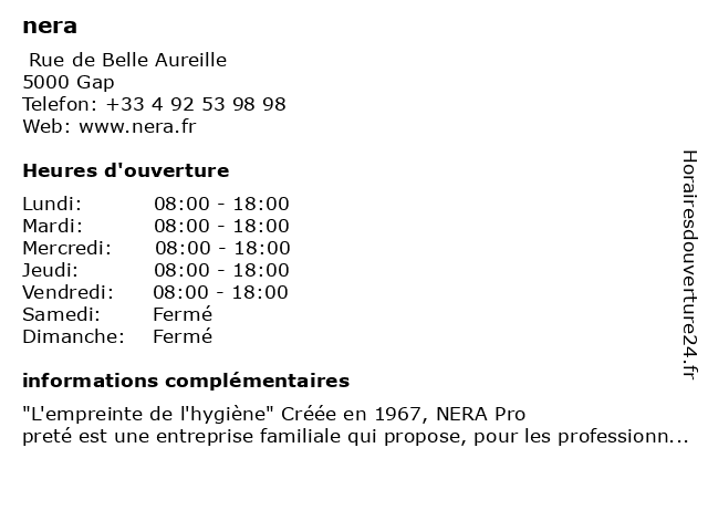 1 Nera Propreté (Distance: 47,67 km) Z.I. Le Guillermin, 05600 Saint-Crépin entretien, nera, nettoyage, propreté, service 2 Nera Propreté (Distance: 51,25 km) 10 avenue Joseph Reinach, 04000 Digne-les-Bains entretien, nera, nettoyage, propreté, service 3 Nera Propreté (Distance: 59,29 km) 348 rue des Tabellions, 05103 Briançon entretien, nera, nettoyage, propreté, service |