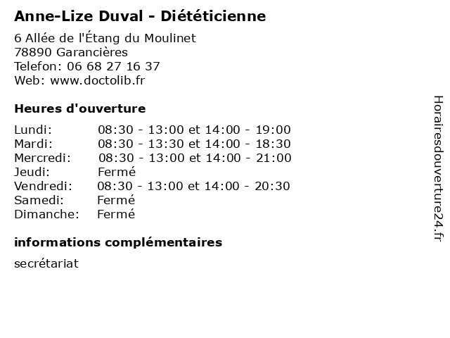 | Mardi | 08:30-13:30 et 14:00-18:30 |