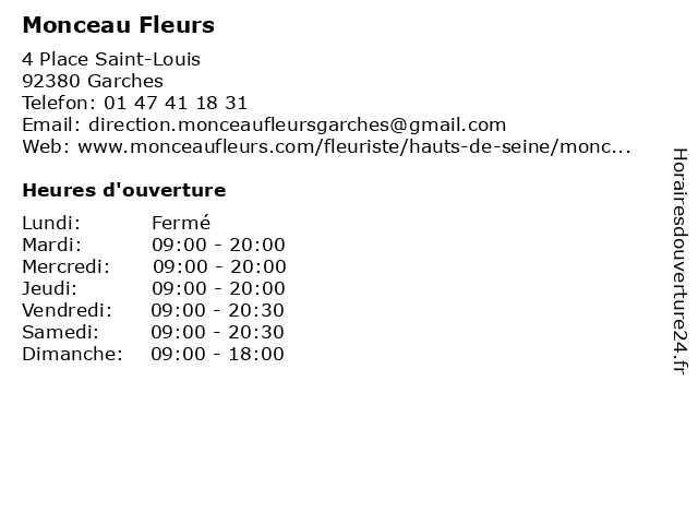 1 Monceau Fleurs (Distance: 1,96 km) 65/69 Boulevard de la République, 92210 Saint-Cloud fleurs, monceau 2 Monceau Fleurs (Distance: 4,63 km) 78 Avenue du général leclerc, 78220 Viroflay boutique, fleuriste, fleurs, monceau 5 Monceau Fleurs (Distance: 8,36 km) 3 place Cambronne, 75015 Paris bouquet, cadeaux, fleur, fleuriste, fleurs, les deuil, mariage, monceau, plante, un service 6 |