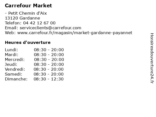 1 Carrefour Market (Distance: 1,55 km) - Avenue Des Anciens, 13120 Gardanne alimentation, carrefour, magasin discount, market, supermarché 2 Carrefour Market (Distance: 6,93 km) 1 Rue Lapierre, 13100 Aix-en-Provence alimentation, boissons, carrefour, droguerie, hygiène, market, supermarché, épicerie 3 Carrefour Market (Distance: 8,36 km) 645 Route de Berre, 13100 Aix-en-Provence alimentation, carrefour, magasin discount, market, supermarché 4 Carrefour Market (Distance: 14,28 km) 23 Rue des Piboules, 13770 Venelles carrefour, electrical appliances, furnitures, garden equipment, market, shelving 5 Carrefour Market (Distance: 16,54 km) 7 Chemin des Amaryllis, 13012 Marseille alimentaire, alimentation, carrefour, courses, distributeur, hypermarché, market, supermarché, épicerie 6 Carrefour Market (Distance: 16,61 km) 303 Avenue Des Poilus, 13012 Marseille carrefour, hypermarché, market, nourriture, supermarché  |