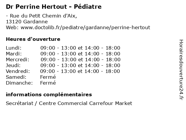 | Jeudi | 09:00-13:00 et 14:00-18:00 |