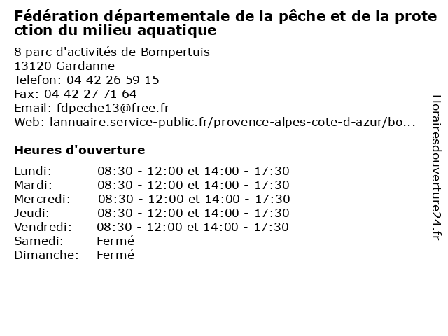 | Lundi | 08:30-12:00 et 14:00-17:30 |