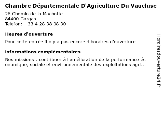 | Appeler Chambre Départementale D'Agriculture Du Vaucluse | |