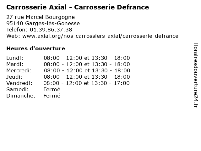 | Lundi | 08:00-12:00 et 13:30-18:00 |
