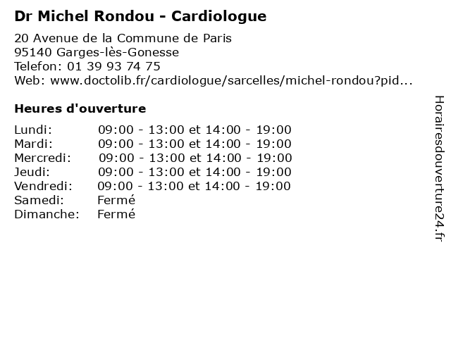 | Lundi | 09:00-13:00 et 14:00-19:00 |
