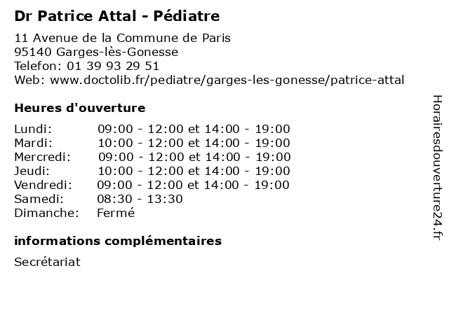 | Lundi | 09:00-12:00 et 14:00-19:00 |
