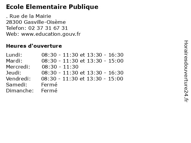 | Mardi | 08:30-11:30 et 13:30-15:00 |