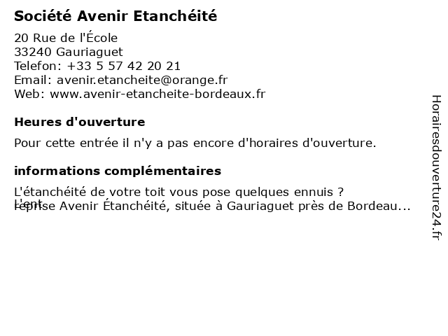 | Appeler Société Avenir Etanchéité | |
