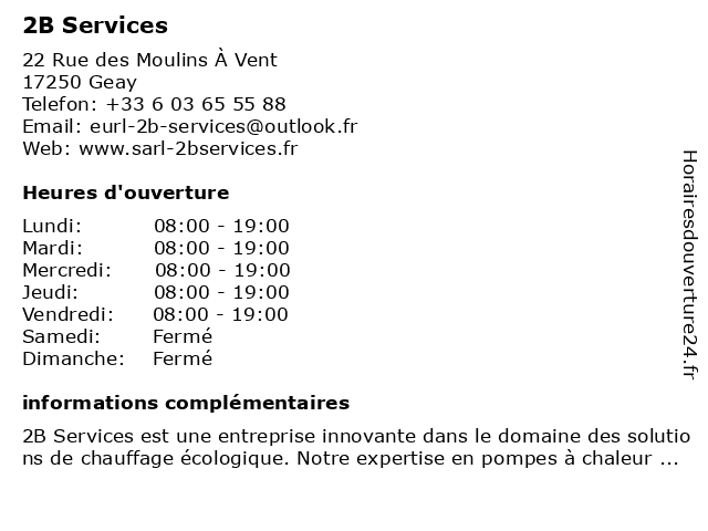 | Lundi | 08:00-19:00 |