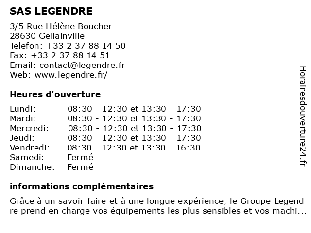 3 SAS LEGENDRE (Distance: 17,42 km) Chemin des Pèlerins, 28700 Auneau-Bleury-Saint-Symphorien legendre, sas 6 |