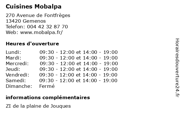 | Lundi | 09:30-12:00 et 14:00-19:00 |