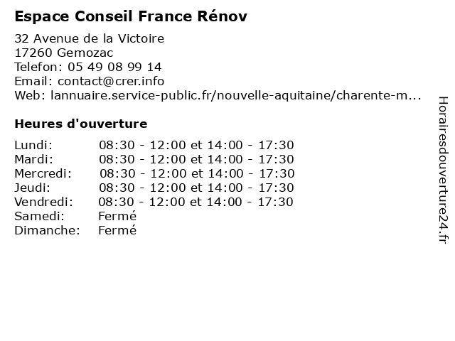 | Mardi | 08:30-12:00 et 14:00-17:30 |