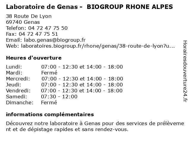 Termes de recherche pour Laboratoire de Genas - BIOGROUP RHONE ALPES:de, genas, laboratoire, alpes, rhone, biogroup, dépistages, laboratoire de diagnostic |