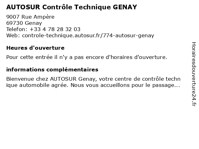 | Appeler AUTOSUR Contrôle Technique GENAY | |