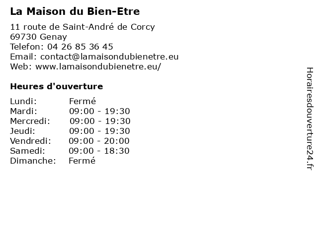 | Jeudi | 09:00-19:30 |