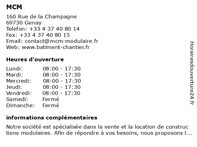 1 MCM (Distance: 56,35 km) 216 Allée du Port Sec, 42650 Saint-Jean-Bonnefonds aluminium, chaudronnerie industrielle, mcm, métallerie, tuyauterie |