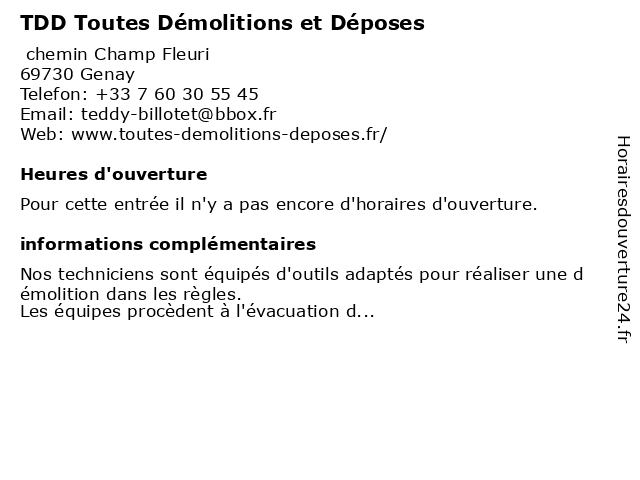 | Appeler TDD Toutes Démolitions et Déposes | |