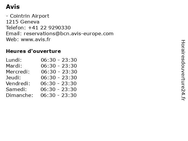 | Vendredi | 06:30-23:30 |