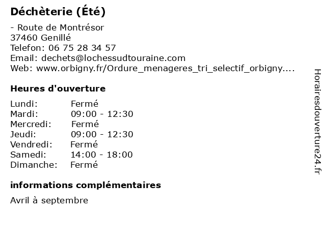 1 Déchèterie (Été) (Distance: 11,60 km) - Place de la Gare, 37150 Chisseaux bennes, débarras, déchèterie, détritus, ordures, été 2 Déchèterie (Été) (Distance: 14,02 km) 26 rue du Commandant Jacques-Yves Cousteau, 37150 Bléré bennes, débarras, déchèterie, détritus, ordures, été 3 Déchèterie (Été) (Distance: 15,37 km) - boulevard de l'Industrie, 41400 Montrichard bennes, débarras, déchèterie, détritus, ordures, été 4 Déchèterie (Hiver) (Distance: 0,00 km) - Route de Montrésor, 37460 Genillé bennes, débarras, déchèterie, détritus, hiver, ordures 5 Déchèterie (Hiver) (Distance: 11,60 km) - Place de la Gare, 37150 Chisseaux bennes, débarras, déchèterie, détritus, hiver, ordures 6 Déchèterie (Hiver) (Distance: 14,02 km) 26 rue du Commandant Jacques-Yves Cousteau, 37150 Bléré bennes, débarras, déchèterie, détritus, hiver, ordures |