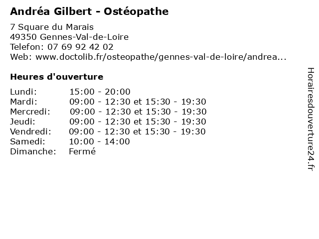 1 Clarisse Gilbert - Naturopathe (Distance: 25,41 km) 16 Place des Justices, 49000 Angers clarisse, gilbert, medecin, naturopathe, plante, sante 2 Entreprise de Maçonnerie Gilbert (Distance: 35,07 km) 9 Rue de Champagne, 49125 Tiercé de, entreprise, gilbert, maçonnerie 3 Laiterie Gilbert (Distance: 40,66 km) 3 impasse Jean Macé, 37500 Chinon affineurs, alimentation, fromage, fromagerie, gilbert, laiterie, magasin 4 Guillaume Gilbert (Distance: 41,09 km) 6 Impasse des Mirabelles, 49170 Saint-Georges-sur-Loire gilbert, guillaume 5 Dr Mayeul Gilbert De Vautibault - Médecin généraliste (Distance: 53,33 km) 1 Rue de la Rabière, 37190 Cheillé de, docteur, dr, generaliste, gilbert, généraliste, mayeul, medical, médecin, soin, vautibault 6 Dr. Claire Gilbert - Résidence Les Cordeliers (EHPAD) (Distance: 59,97 km) 1 Rue Marengo, 49325 Cholet claire, cordeliers, docteur, dr., ehpad, gilbert, les, medecins, résidence, sante |