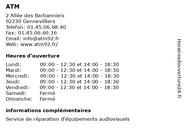 1 Atm Immobilier (Distance: 5,95 km) 12 rue de la Poterne, 95160 Montmorency achat, agence, agent, appartement, atm, bailleur, gestion, immobilier, immobilière, location, logement, maisons, transactions, vente 2 ATM Proscootservices (Distance: 8,22 km) 17 Avenue Claude Vellefaux, 75010 Paris atm, proscootservices 3 5 Assure Transports Multiservices ATM (Distance: 19,79 km) 15 Rue du Dr Roux, 94600 Choisy-le-Roi assure, atm, multiservices, transports 6 Europ Assistance (Distance: 0,20 km) 1 promenade de la Bonnette, 92230 Gennevilliers assistance, assurance, courtage, dommages, europ, particulier, prévoyance, santé |