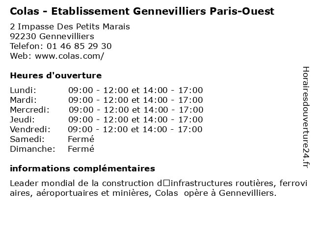 Termes de recherche pour Colas - Etablissement Gennevilliers Paris-Ouest:paris, ouest, colas, gennevilliers, etablissement, entreprise générale de construction |