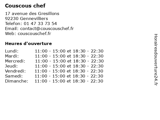 | Mardi | 11:00-15:00 et 18:30-22:30 |