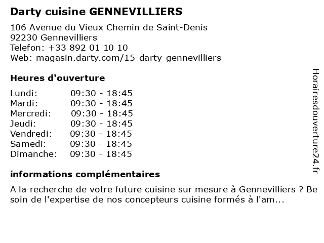 1 DARTY Gennevilliers (Distance: 0,01 km) 106 Avenue du Vieux Chemin de Saint-Denis, 92230 Gennevilliers darty, gennevilliers 2 Cuisine Club (Distance: 2,47 km) 59 Boulevard Jules Guesde, 93200 Saint Denis club, cuisine, restaurants 3 Cuisine Evolutive-Ecole-Ste-Therese Epinay (Distance: 2,79 km) Convivio Evo, 93800 Epinay Sur Seine convivio, cuisine, ecole, epinay, evo, evolutive, restaurants, therese 4 Le Groupe Darty - Car Park (Distance: 3,43 km) . Avenue d'Orgemont, 92600 Colombes automobile, car, darty, groupe, le, park, parking, services 5 Cuisine Du Chef h (Distance: 4,16 km) 55 Rue De Saint Denis, 93300 Aubervilliers chef, cuisine, hachimi, haliche, restaurants 6 Darty Cuisine Colombes (Distance: 4,44 km) 89 Rue du Bournard, 92700 Colombes colombes, cuisine, darty |