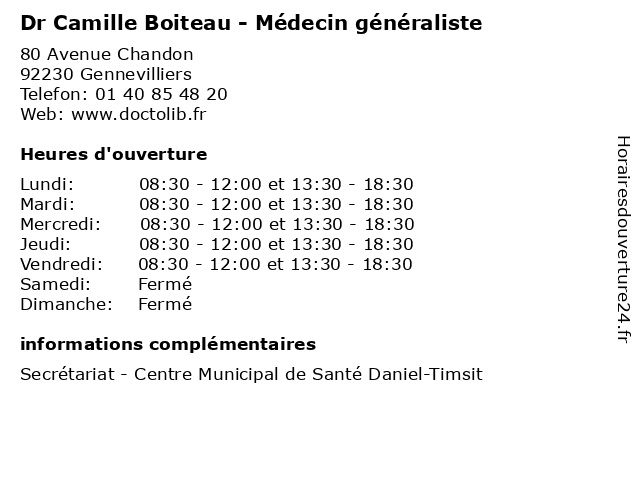 | Lundi | 08:30-12:00 et 13:30-18:30 |